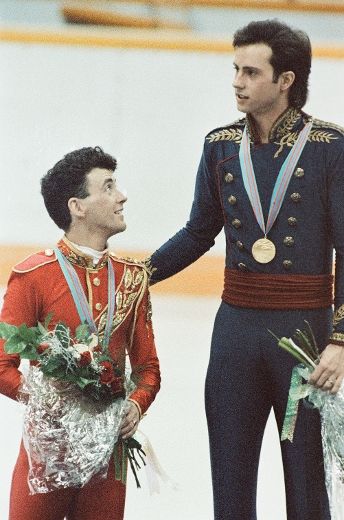 I followed the sport faithfully after that, watching Hamilton fulfill his early promise with four world championships and a gold medal in Sarajevo, 1984. After that, I watched two amazingly talented, closely matched male skaters–one American, one Canadian, both named Brian–vie for dominance in the sport over the next four years, a competition finally resolved by a narrow victory for the American Brian [Boitano] over the Canadian Brian [Orser] at the 1988 Olympics in Calgary. (By the way, “Battle of the Brians” = “Best Skating Rivalry Ever”). And I was thrilled when perennial long shot Paul Wylie won a silver medal at the Albertville Games in 1992, skating beautifully to a program set to Patrick Doyle’s “Henry V,” one of my all-time favorite soundtracks.
