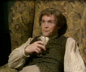 Apropos of which, George Warleggan is overdoing the Iago shtick of dripping malice and poison in everyone’s ears. While I like the idea of George being present early on–he doesn’t make his onscreen appearance until Episode 6 of the 1975 miniseries–he’s way too obvious in his villainy at this point. You half-expect him to leave a trail of slime wherever he goes. The antipathy between Ross and George has a slower build and burn in the books, plus George doesn’t overplay his hand regarding the Trenwith Poldarks. His open admiration for Elizabeth (contrary to the last episode’s insinuation, George actually wasn’t much of a rake) and his largesse towards Francis have both of them thinking George is their BFF, at least for a while. I also find this George too smooth, foppish, and physically slight–he’s supposed to have a more impressive, muscular physique that recalls his grandfather’s blacksmith origins. This fellow looks as though Turner’s Ross could snap him in half like a twig. So could Ralph Bates, who played George in Poldark 1975.